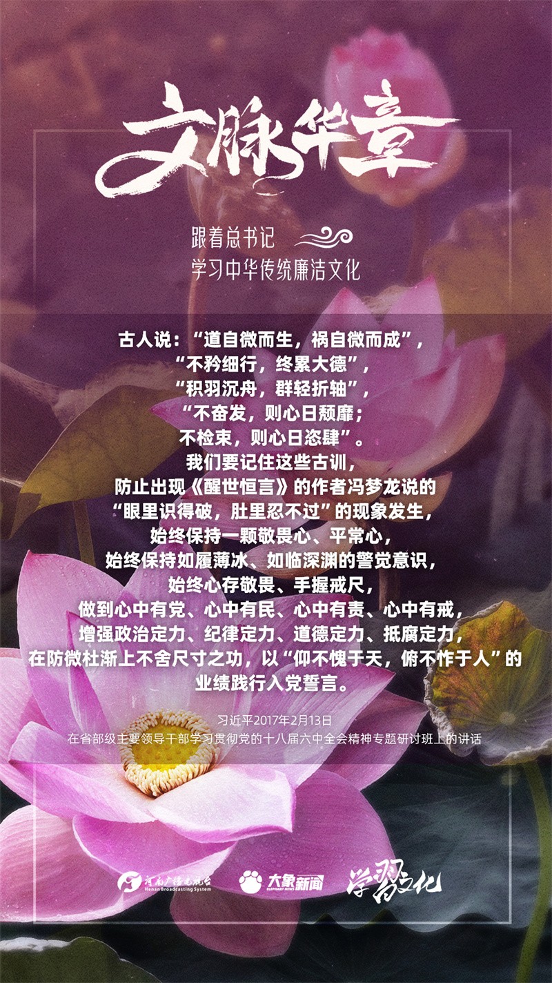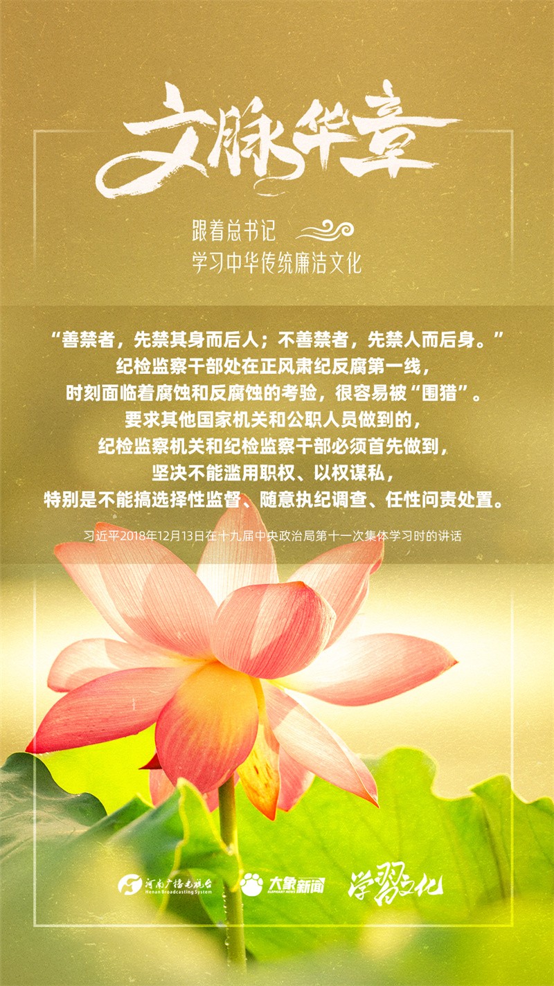中華優秀傳統文化蘊含著豐富的廉潔文化,習近平總書記曾指出:沒有中華優秀傳統文化、革命文化、社會主義先進文化的底蘊和滋養,信仰信念就難以深沉而執著。總書記常常引經據典,教育引導廣大黨員干部正心修身,涵養文化,守住為政之本。讓我們一起跟著總書記學習中華傳統廉潔文化。今天推出第三期