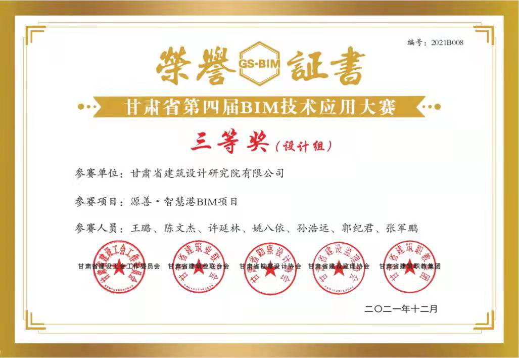 日前,甘肅省建設工會工作委員會、甘肅省建筑業聯合會、甘肅省勘察設計協會、甘肅省建設監理協會、甘肅省建筑職教集團聯合舉辦的“2021年甘肅省職工職業技能競賽暨甘肅省第四屆BIM技術應用大賽”評選結果揭曉,甘肅省城鄉規劃設計研究院有限公司“BIM技術正向設計在蘭州中川國際機場三期擴建工程航站區附屬用房工程項目中的應用”獲得“BIM技術應用作品征集”比賽設計組一等獎;甘肅省建筑設計研究院有限公司“甘肅省臨洮體育訓練基地二期建設(滑冰館)項目BIM技術在總承包管理中的綜合應用”獲得二等獎,“緣善智慧港BIM項目”獲得三等獎;甘肅省建設監理有限責任公司李燕燕獲得“BIM技術技能比賽”三等獎。