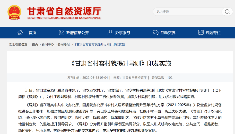 甘肅省城鄉規劃設計研究院有限公司主編的《甘肅省村容村貌提升導則(試行)》印發實施