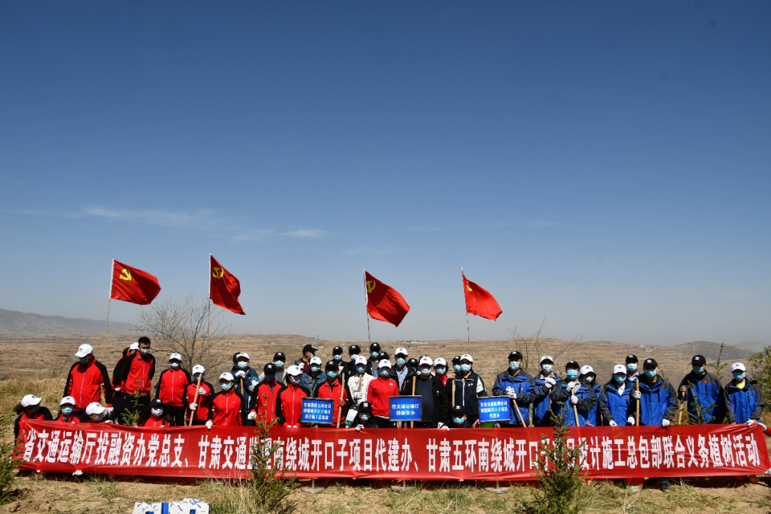 近日,甘肅省交通工程建設監理有限公司機關第二黨支部聯合省交通運輸廳投融資管理辦公室黨總支、甘肅五環公路工程有限公司黨總支在甘肅青年生態修復林開展結對共建義務植樹活動。省交通運輸廳投融資管理辦公室黨總支、交通監理公司、甘肅五環公路工程有限公司50余名黨員領導干部參加活動。