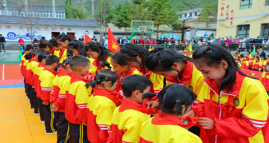 活動(dòng)現(xiàn)場(chǎng),在莊嚴(yán)激昂的國(guó)歌聲中舉行了升國(guó)旗儀式。簡(jiǎn)單而又隆重的入隊(duì)儀式上,鮮紅的隊(duì)旗迎風(fēng)飄揚(yáng),隨著入隊(duì)隊(duì)員名單的宣布,許多一年級(jí)的同學(xué)成為了光榮的中國(guó)少年先鋒隊(duì)隊(duì)員,并由高年級(jí)的少先隊(duì)員為他們戴上了鮮艷的紅領(lǐng)巾。隨后,大隊(duì)輔導(dǎo)員帶領(lǐng)新隊(duì)員宣誓,響亮的呼號(hào)聲“時(shí)刻準(zhǔn)備著”響徹校園上空,集中展示了新時(shí)代少先隊(duì)員積極向上的精神風(fēng)貌,全體師生為他們送上最深的祝福。最后,新隊(duì)員代表發(fā)言,標(biāo)準(zhǔn)的隊(duì)禮、堅(jiān)定的眼神、稚嫩的聲音表達(dá)了最大的決心,號(hào)召全體新隊(duì)員要在星星火炬的指引下刻苦讀書,從小聽黨話、感黨恩、跟黨走,努力成長(zhǎng)為中國(guó)特色社會(huì)主義事業(yè)建設(shè)者和接班人。