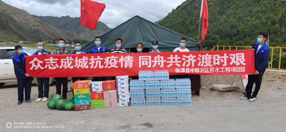 在做好項目部科學防疫、安全生產工作的同時,項目部積極組織屬地疫情防控工作,協助臨潭縣洮濱鎮搭建聯合檢疫站點,為檢疫站點提供生活辦公用電、用水等,向奮戰在抗疫一線的檢查站工作人員送去了礦泉水、牛奶、方便面、西瓜等生活物資,向勇于擔當、不辭辛苦、守護人民健康、無私奉獻的抗疫人員表達了崇高的敬意和誠摯的感謝。