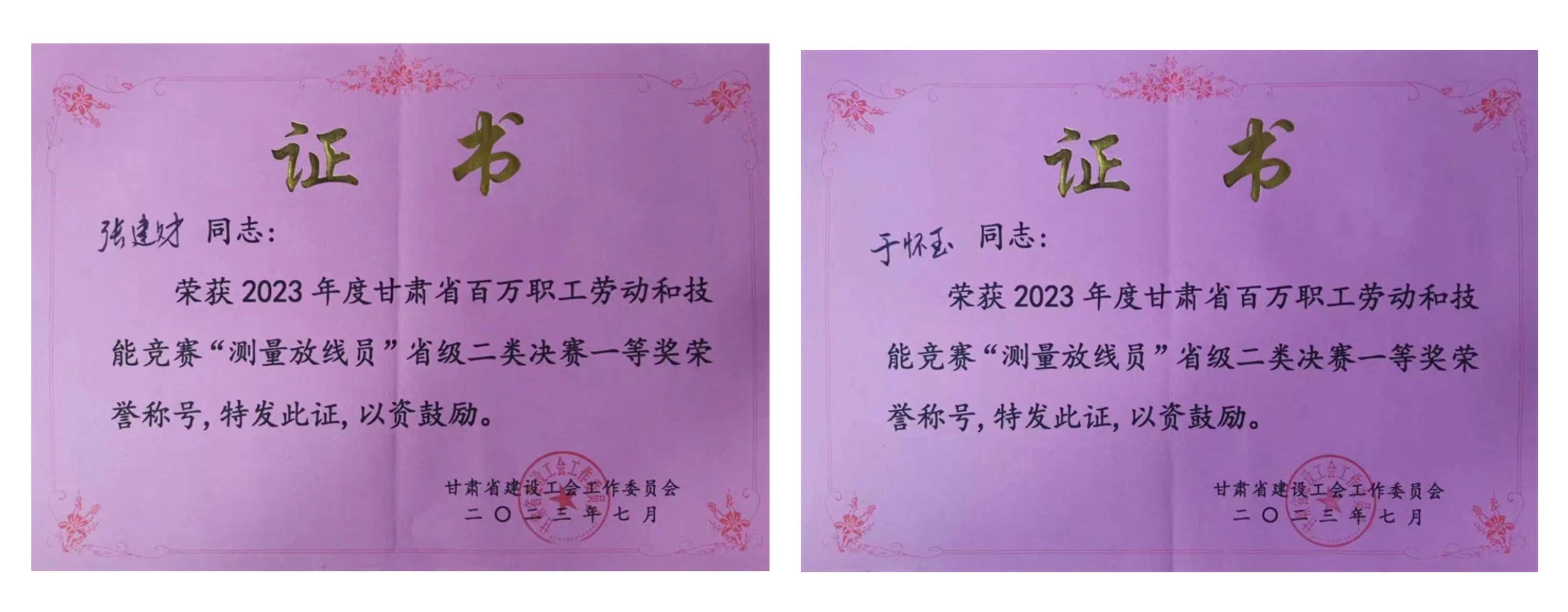 近日,從省建設工會“2023年度甘肅省百萬職工勞動和技能競賽”組委會傳來好消息,省建筑設計院選派的巖土技術中心、巖土工程公司張建財和于懷玉兩名同志,榮獲2023年度甘肅省百萬職工勞動和技能競賽“測量放線員”省級二類決賽一等獎榮譽稱號。