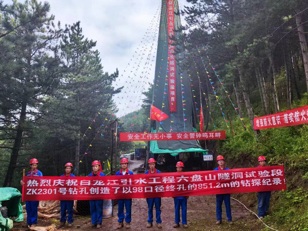 近日,省水電設(shè)計(jì)院勘探公司在白龍江引水工程六盤山長(zhǎng)隧洞試驗(yàn)段項(xiàng)目ZK2301鉆孔施工中,以98mm口徑順利完成851.2m鉆進(jìn)任務(wù),刷新了水電設(shè)計(jì)院在該口徑終孔鉆探原575m后最深紀(jì)錄,極大地提振了干部職工的雄心壯志。