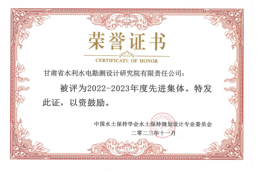 11月5日至7日,中國水土保持學(xué)會(huì)2023年年會(huì)暨學(xué)術(shù)研討會(huì)在蘭州召開。省水電設(shè)計(jì)院榮獲中國水土保持學(xué)會(huì)2022-2023年度“先進(jìn)集體”稱號,水保設(shè)計(jì)咨詢公司王向明榮獲“先進(jìn)個(gè)人”稱號。1篇論文獲優(yōu)秀論文獎(jiǎng)。